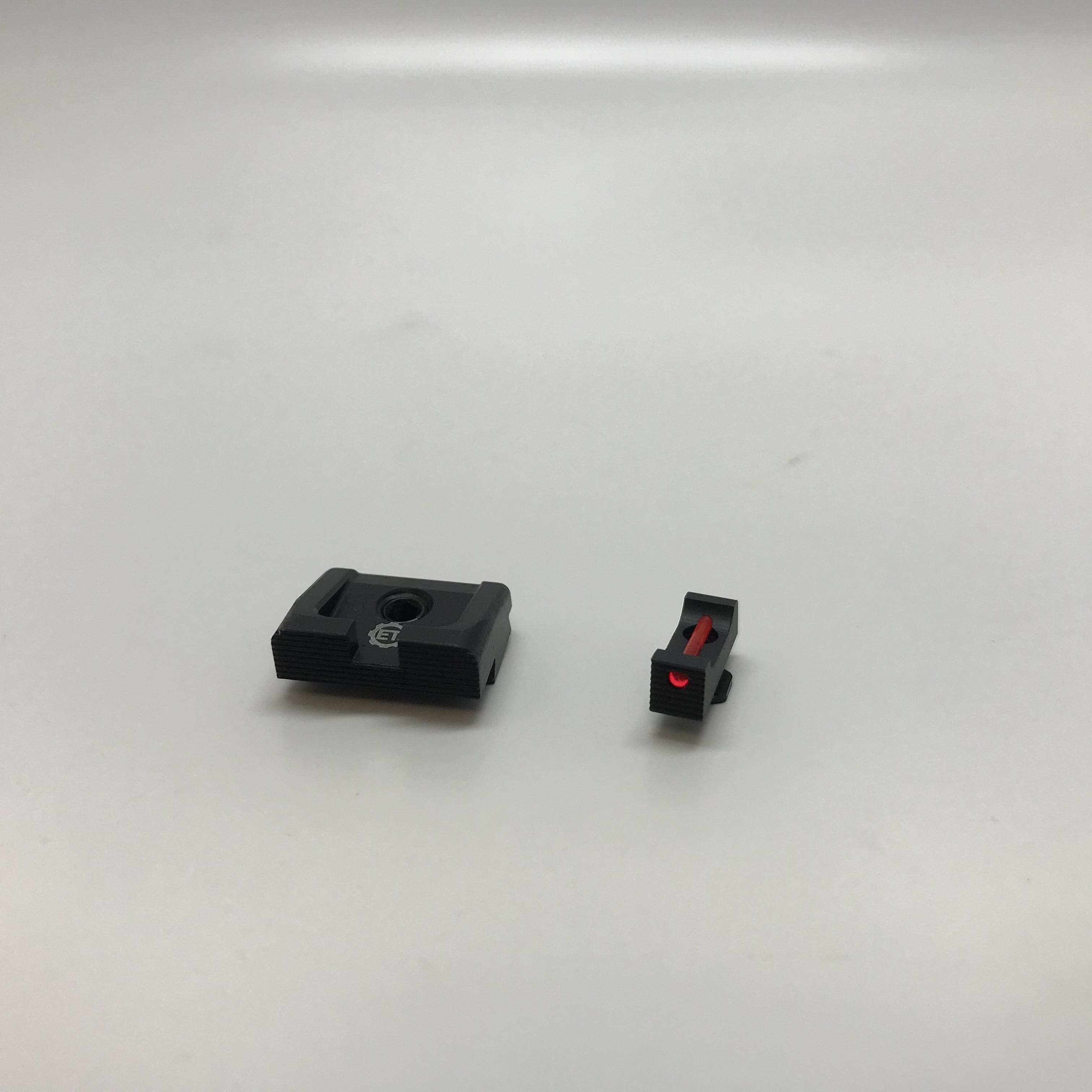 Ultraflache Fiberoptik für Glockpistolen um möglichst viel Platz in der IPSC Standartbox zu sparen.